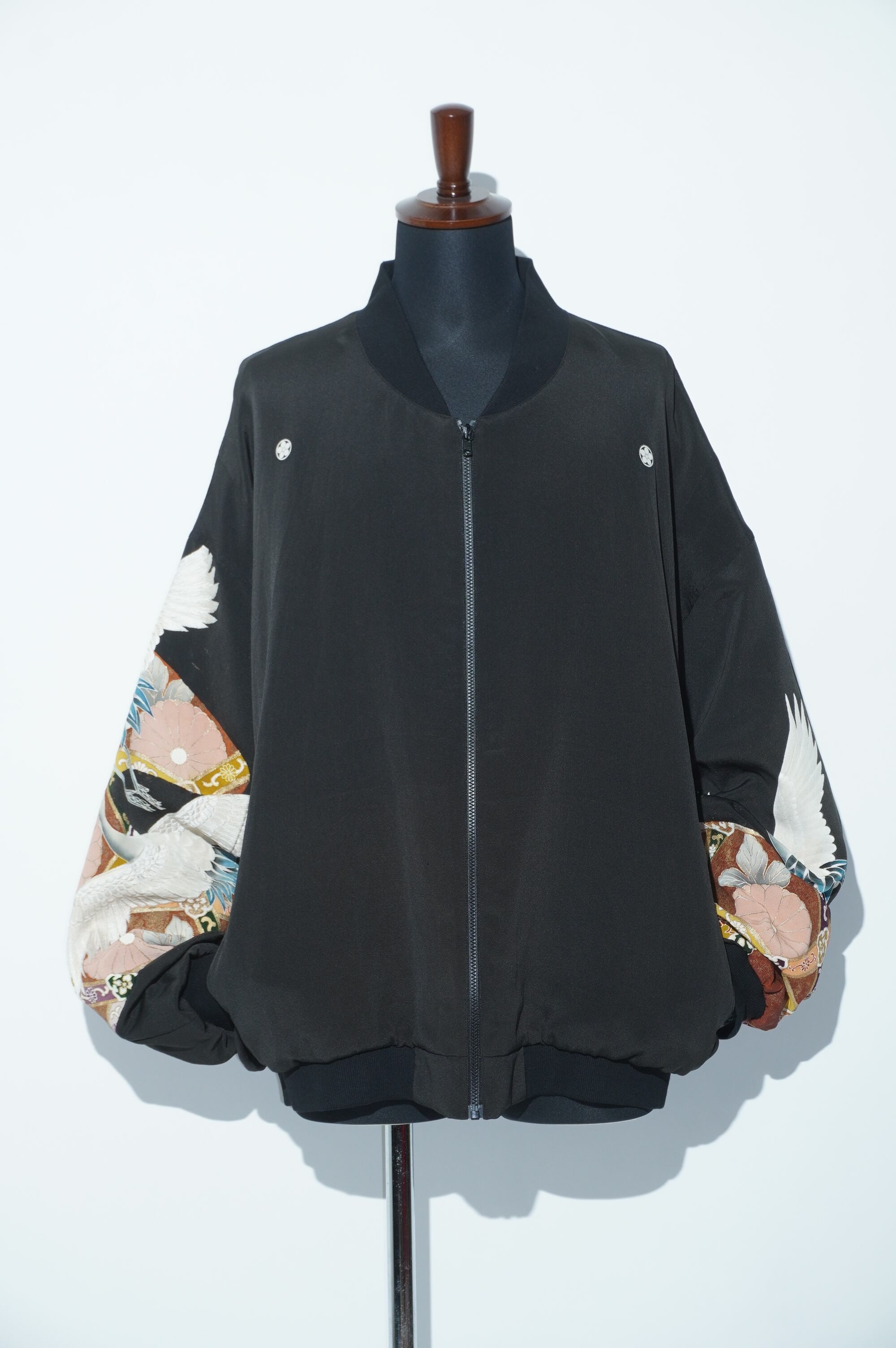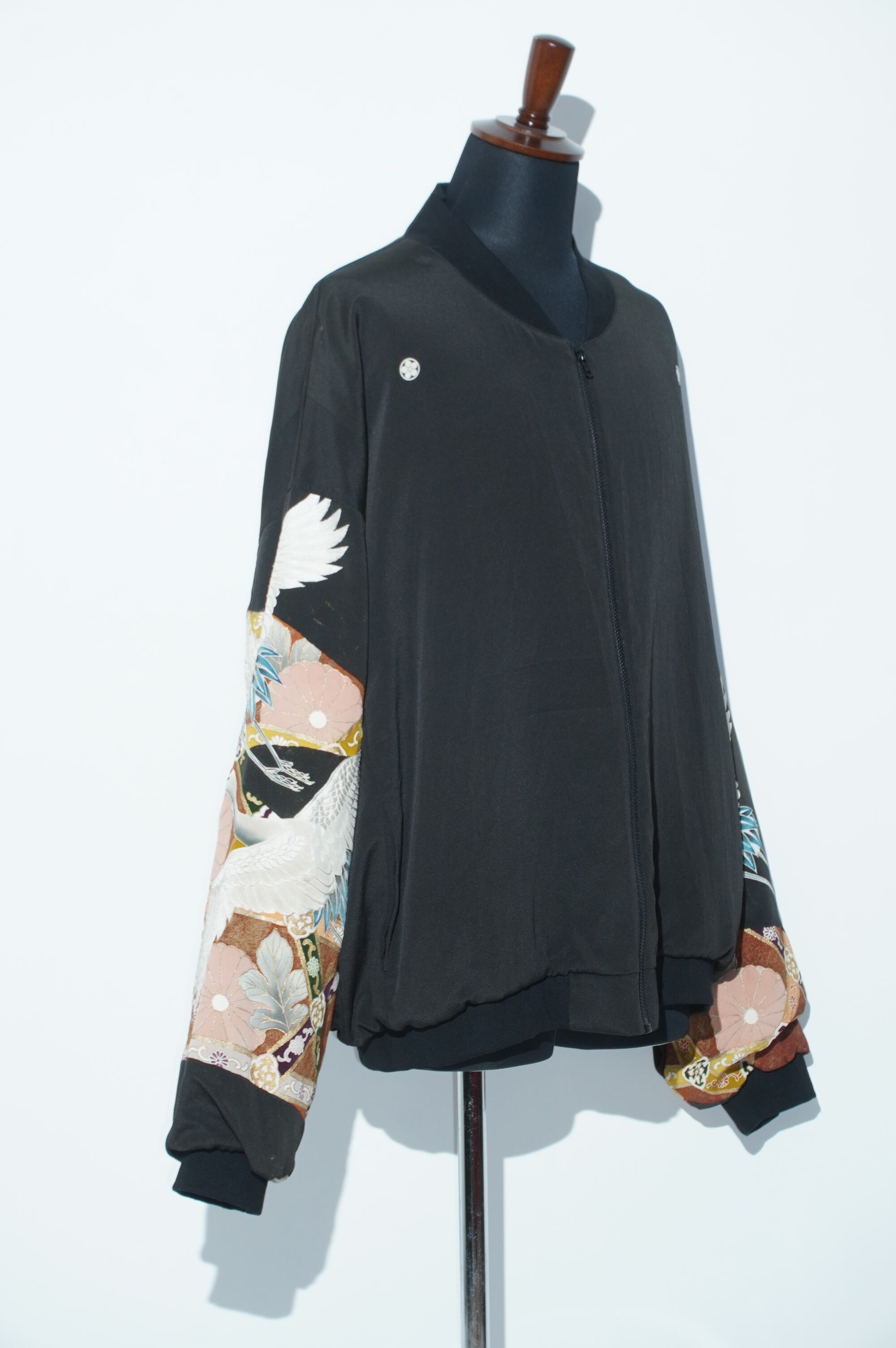 黒留袖を解体し、最新の技術で水通しされた生地から製作されたブルゾンです。