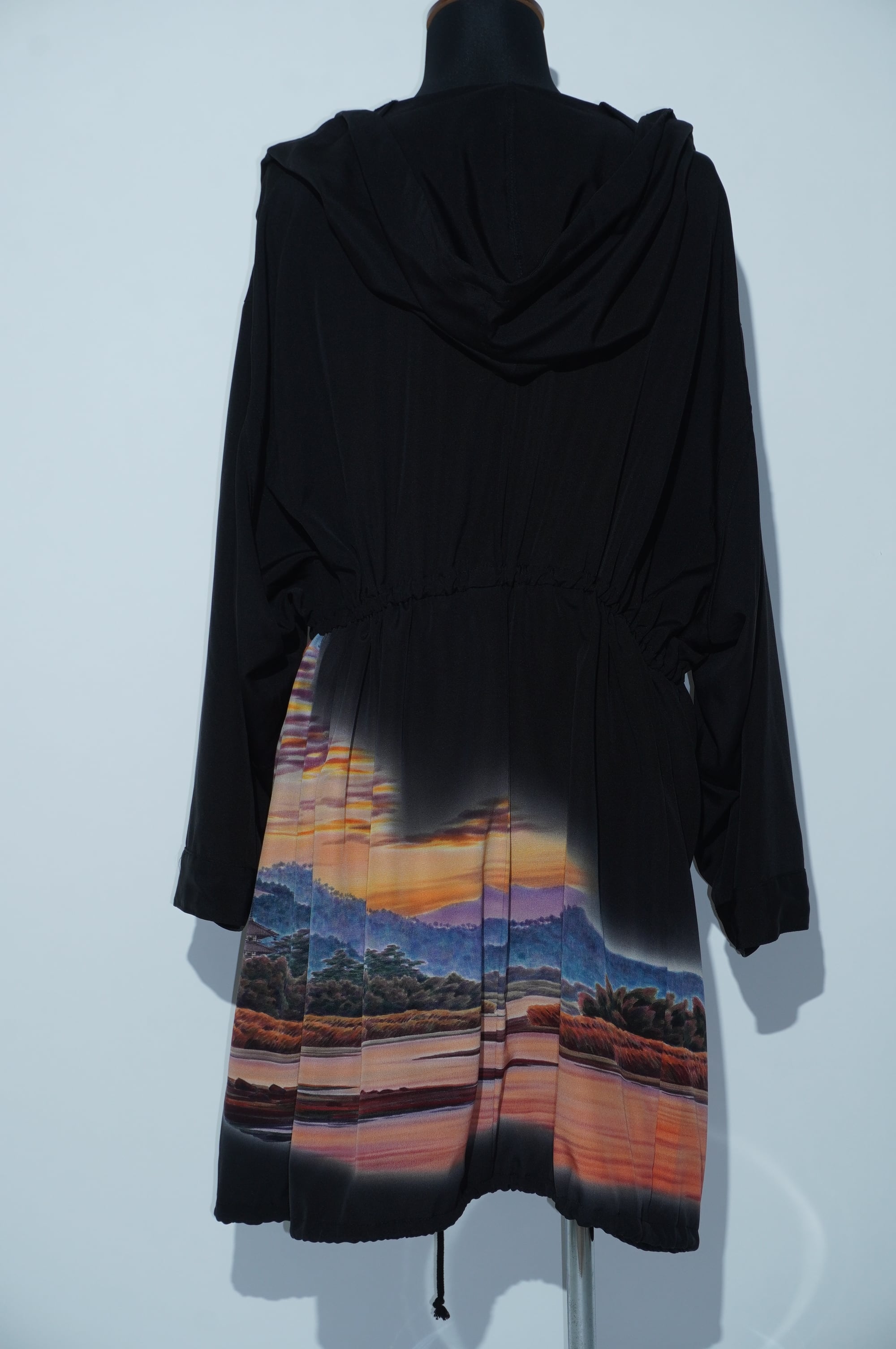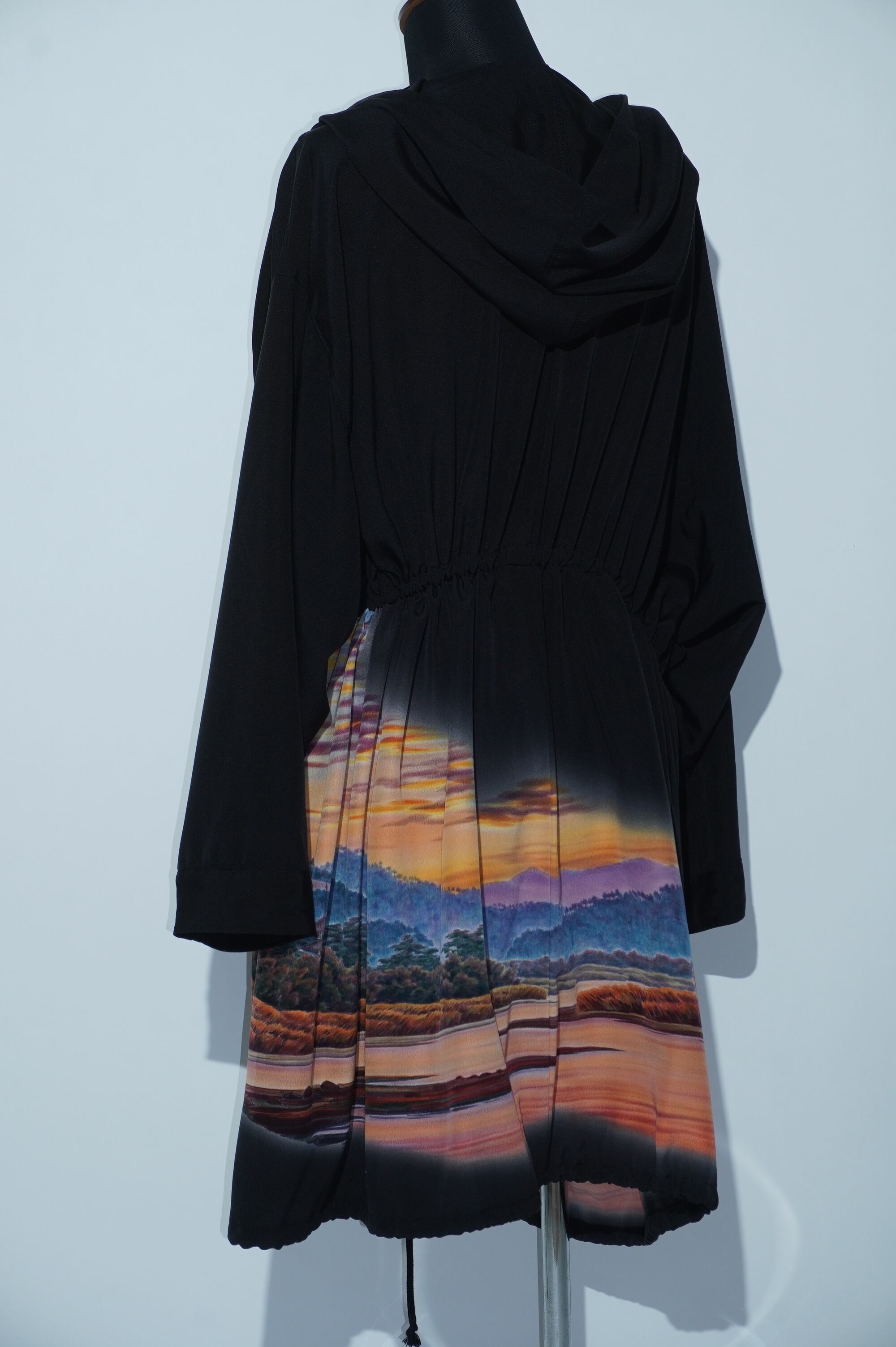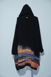 大きなフードが特長的なこのアイテムは、ウエスト部分をドローコードで好みの大きさに絞ることが可能なデザインです。