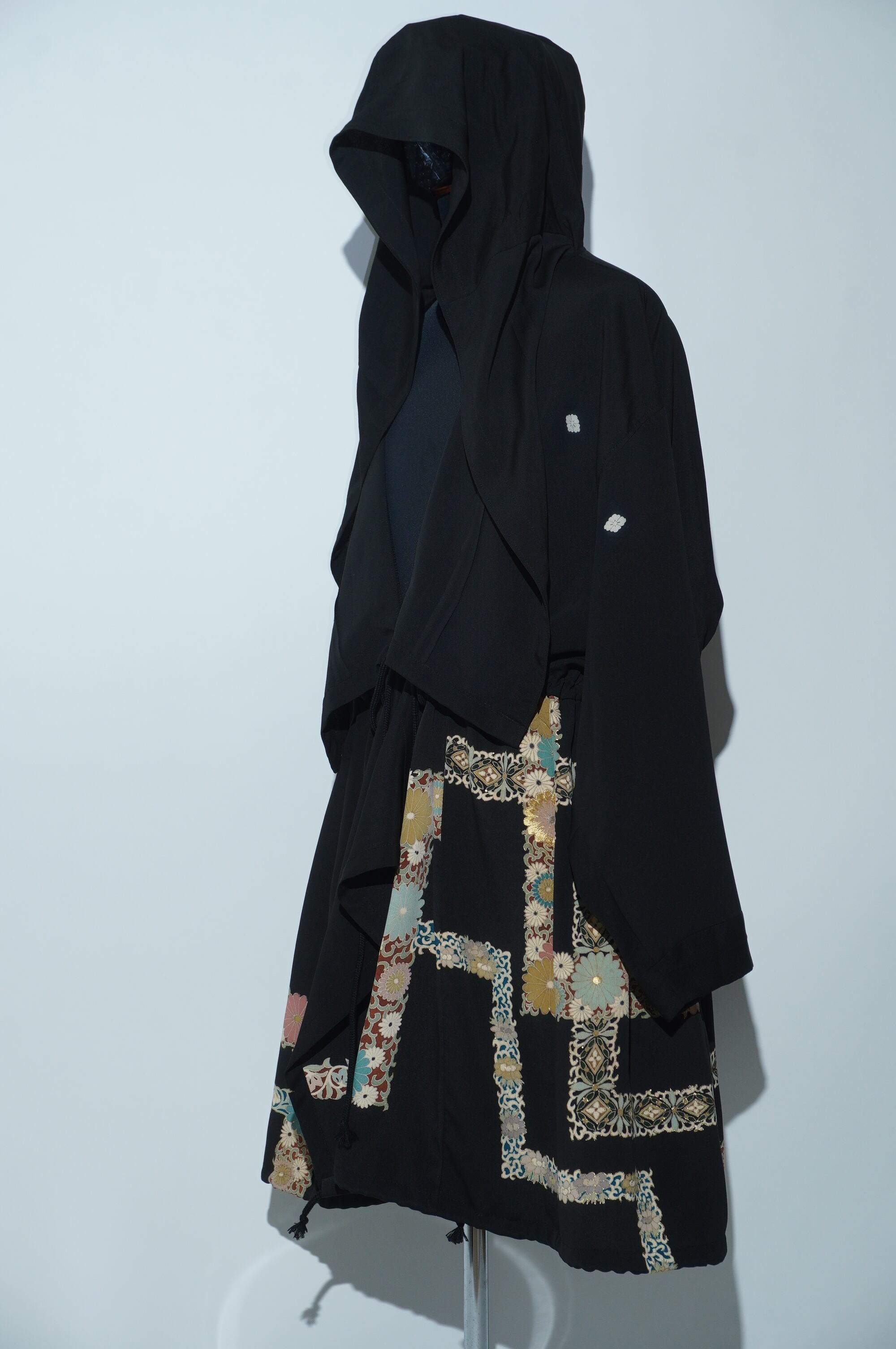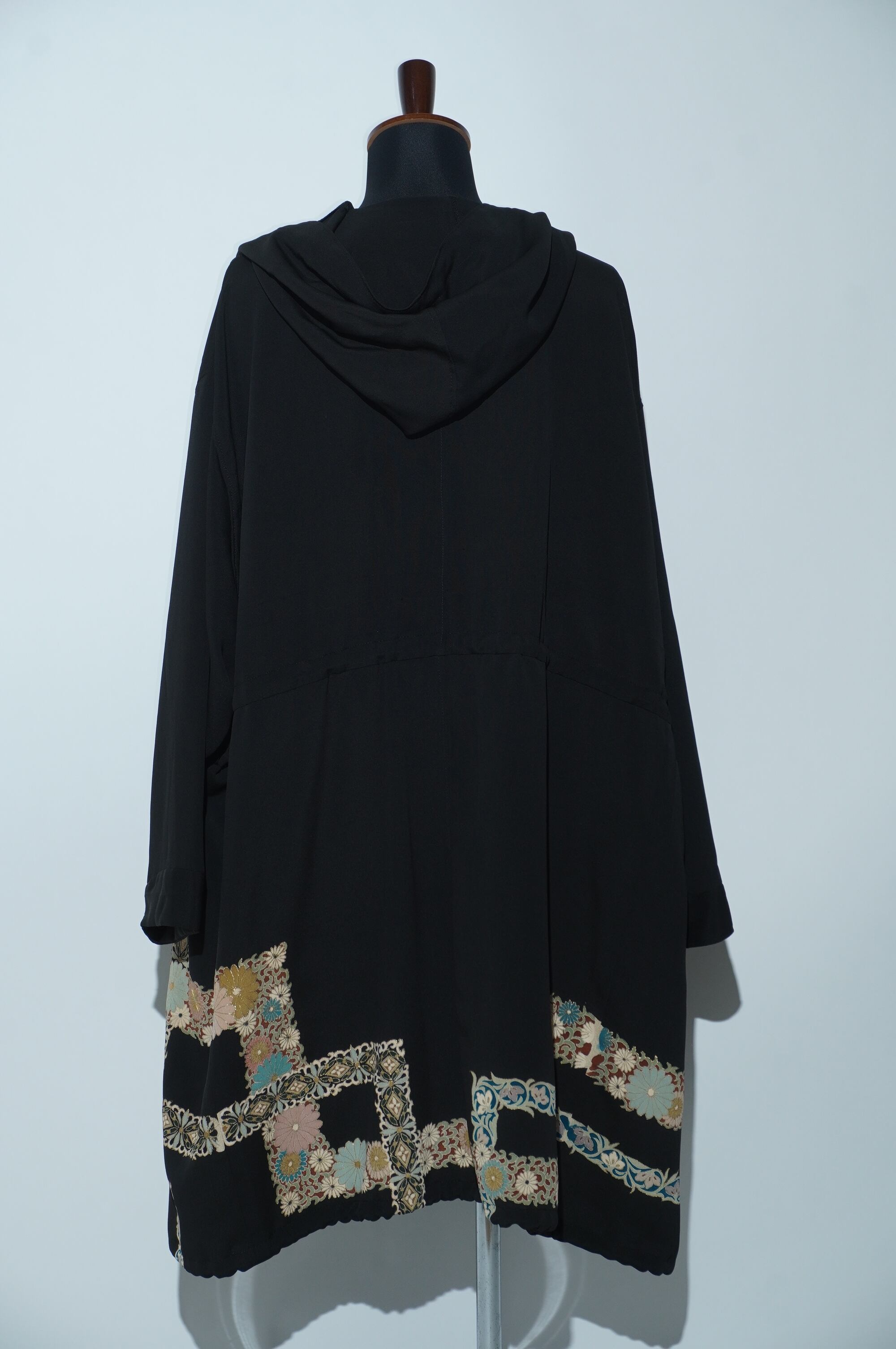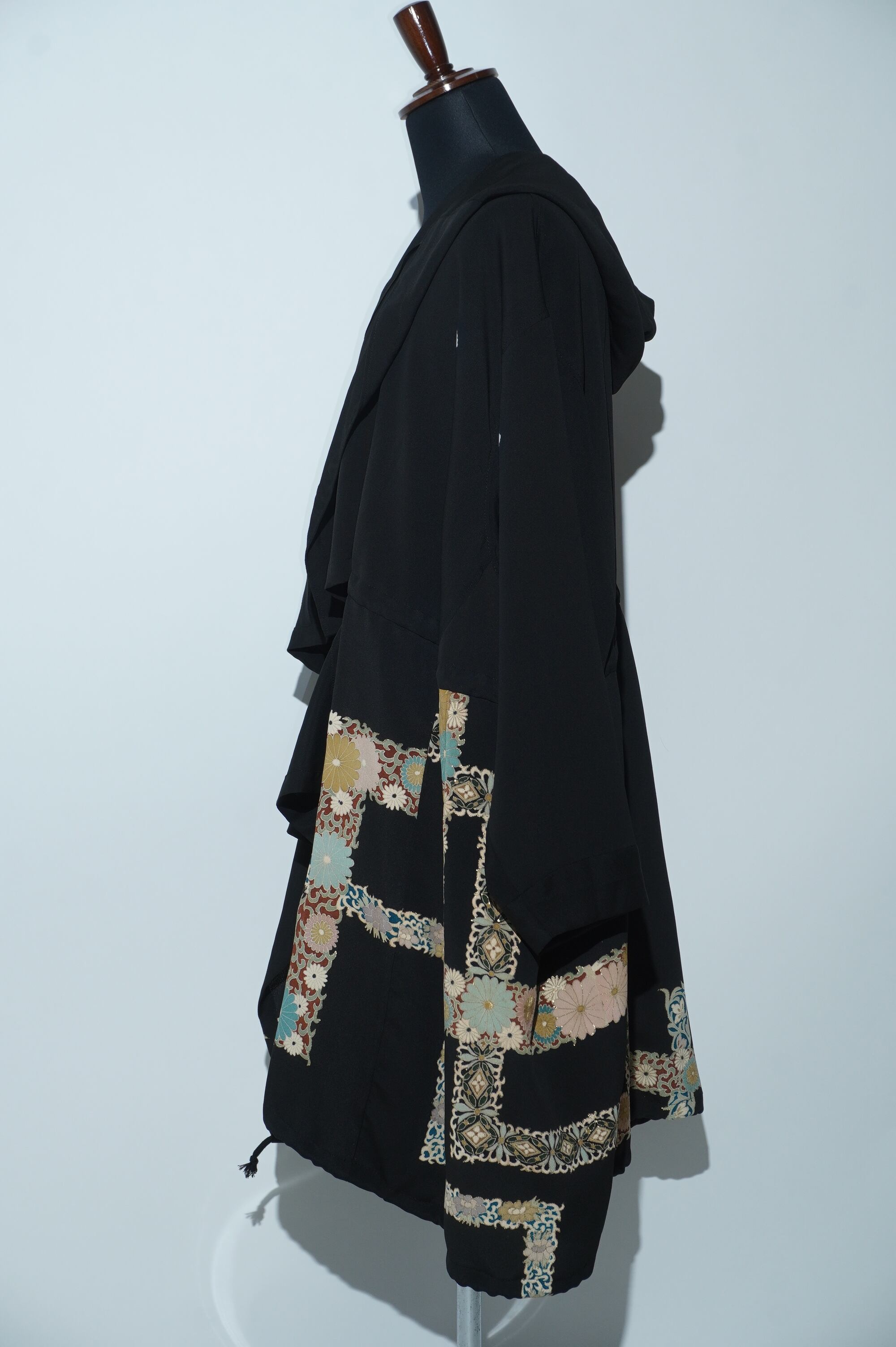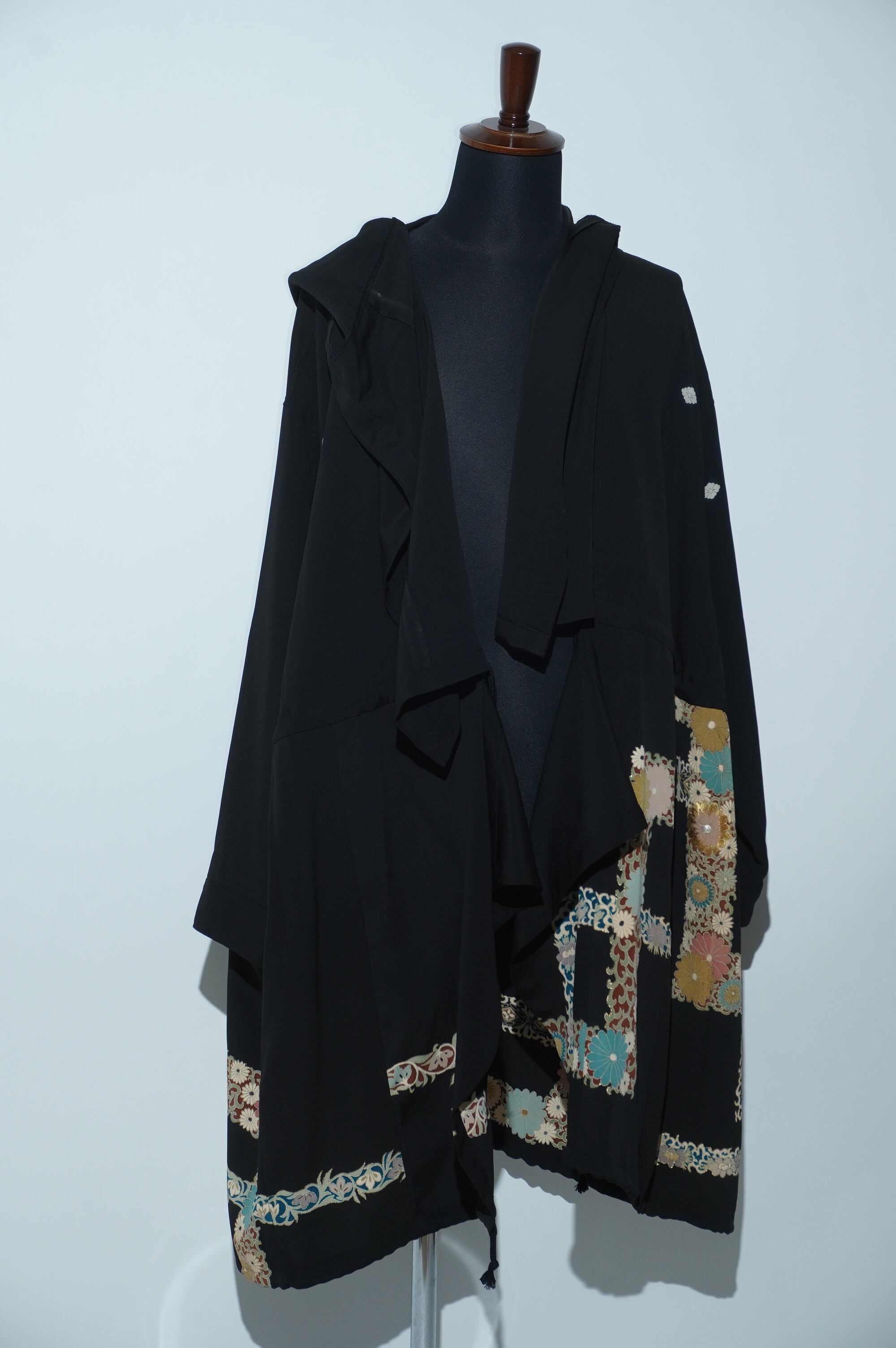 黒留袖リメイクコート/Large hood 菊 七宝文様