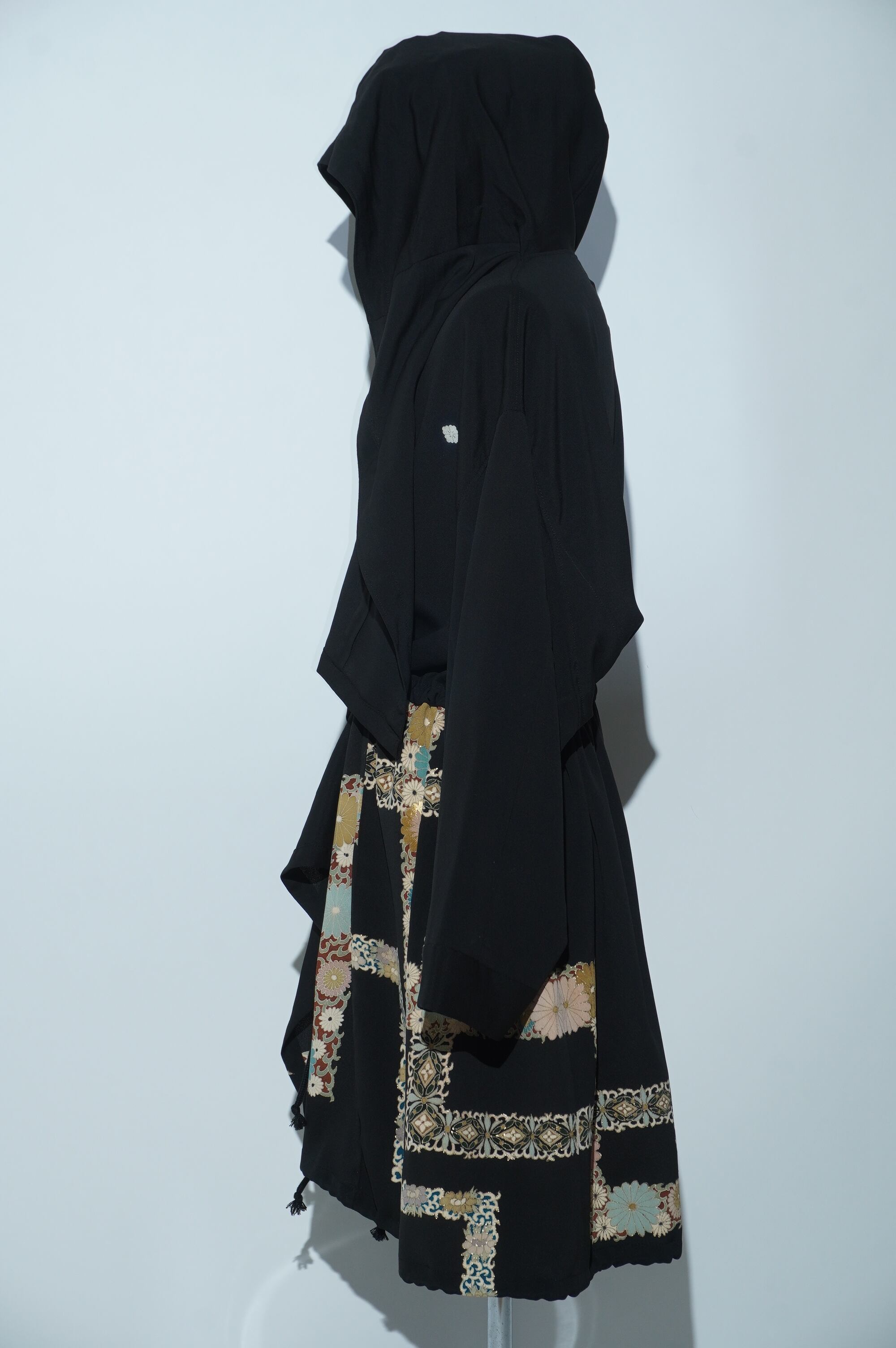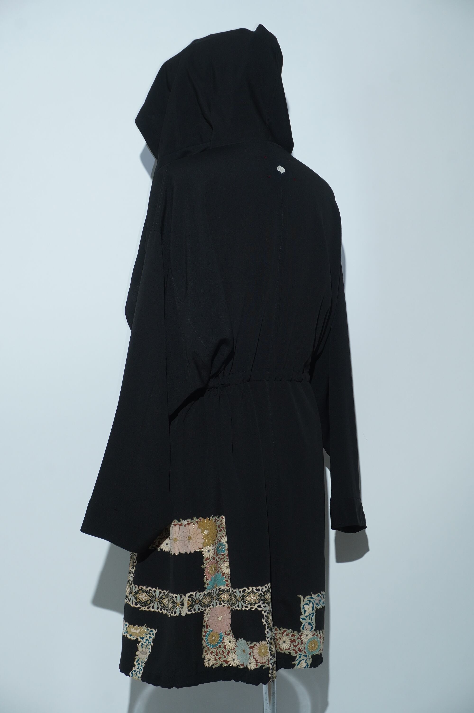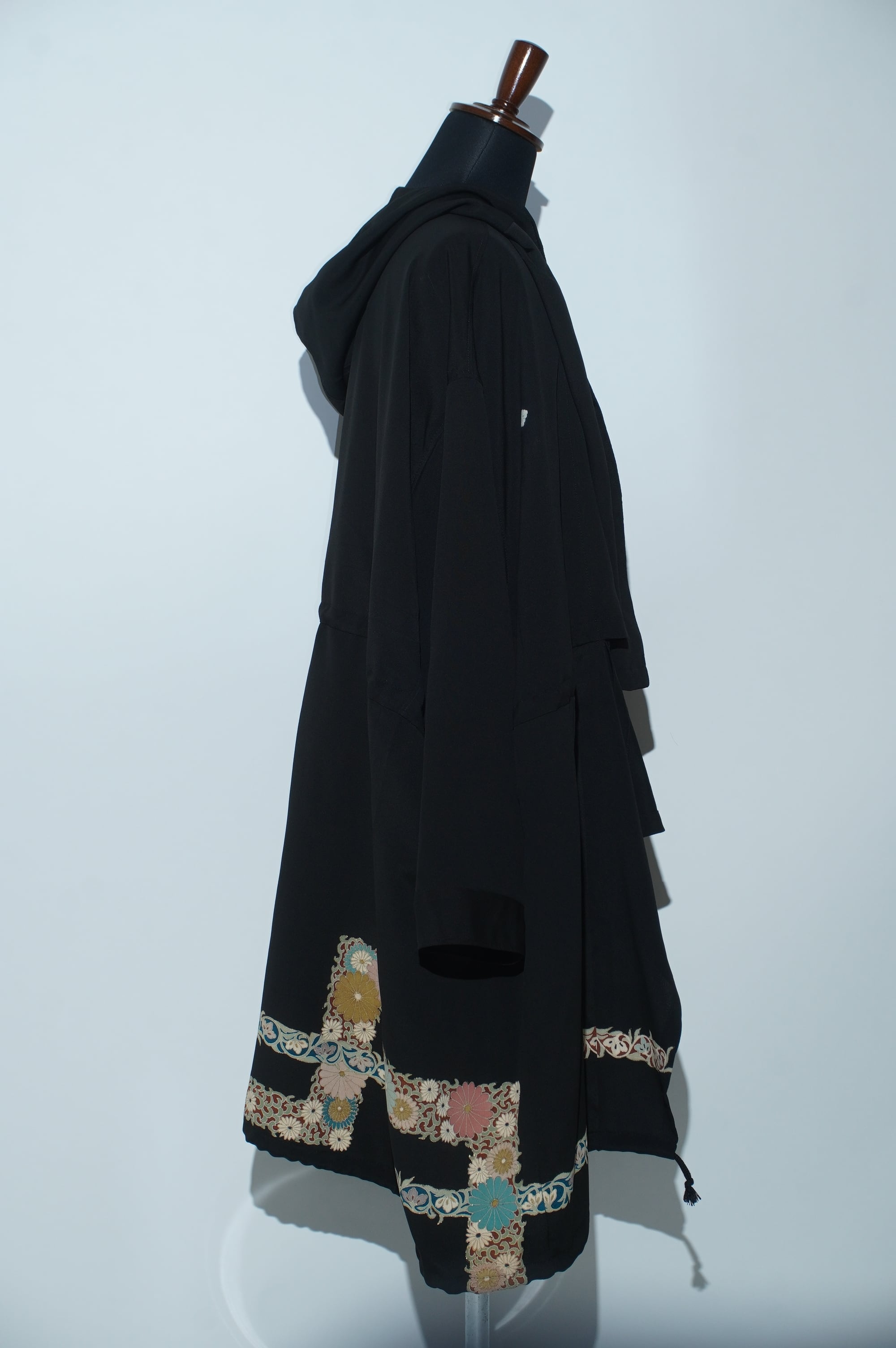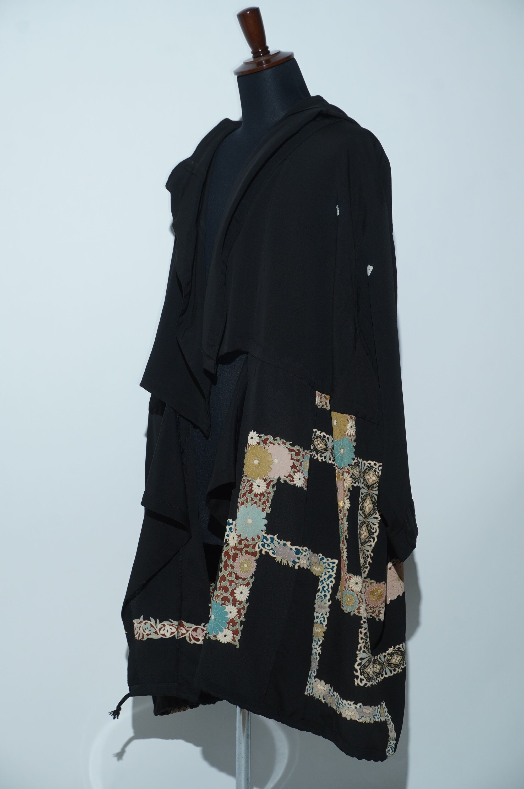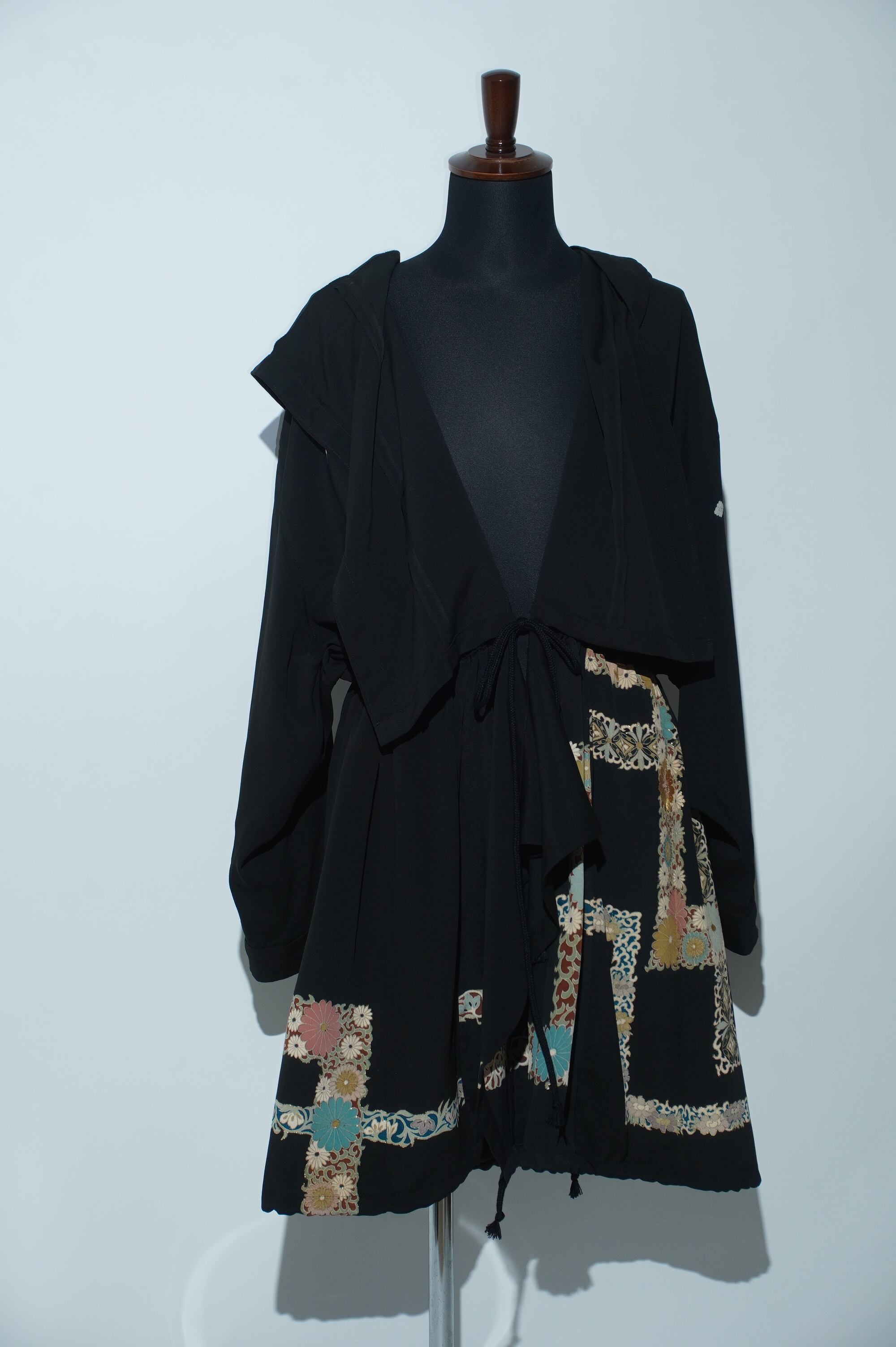 黒留袖リメイクコート/Large hood 菊 七宝文様