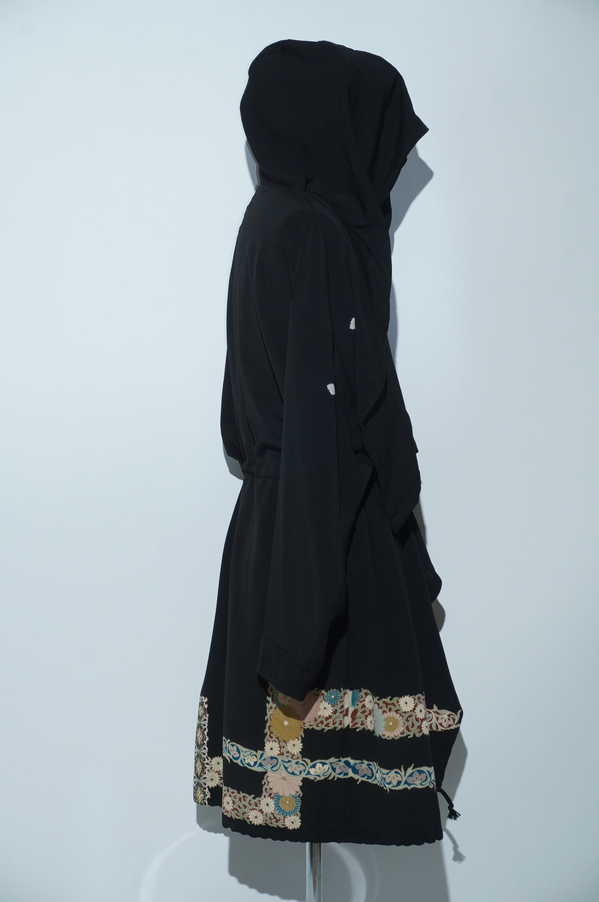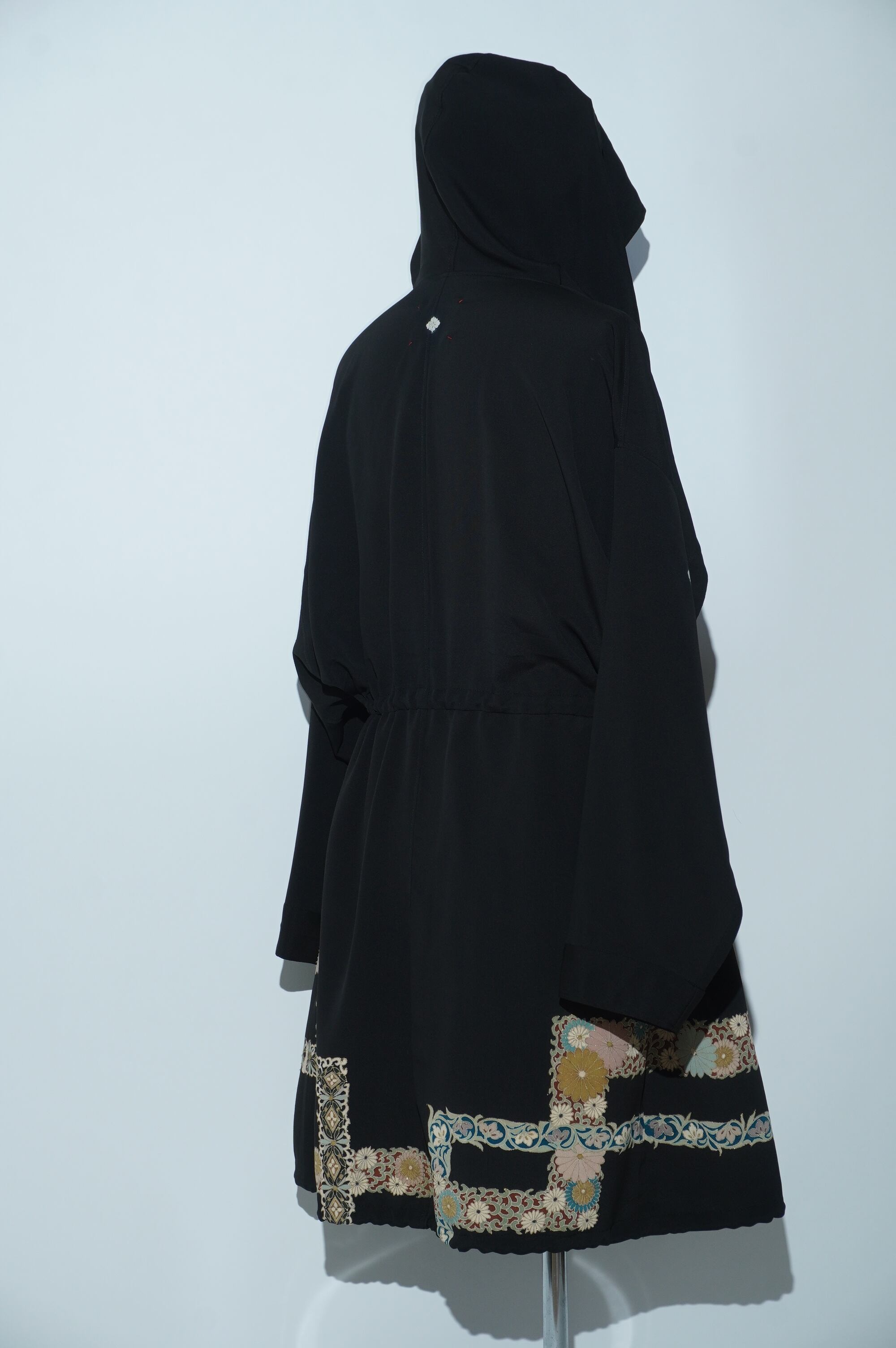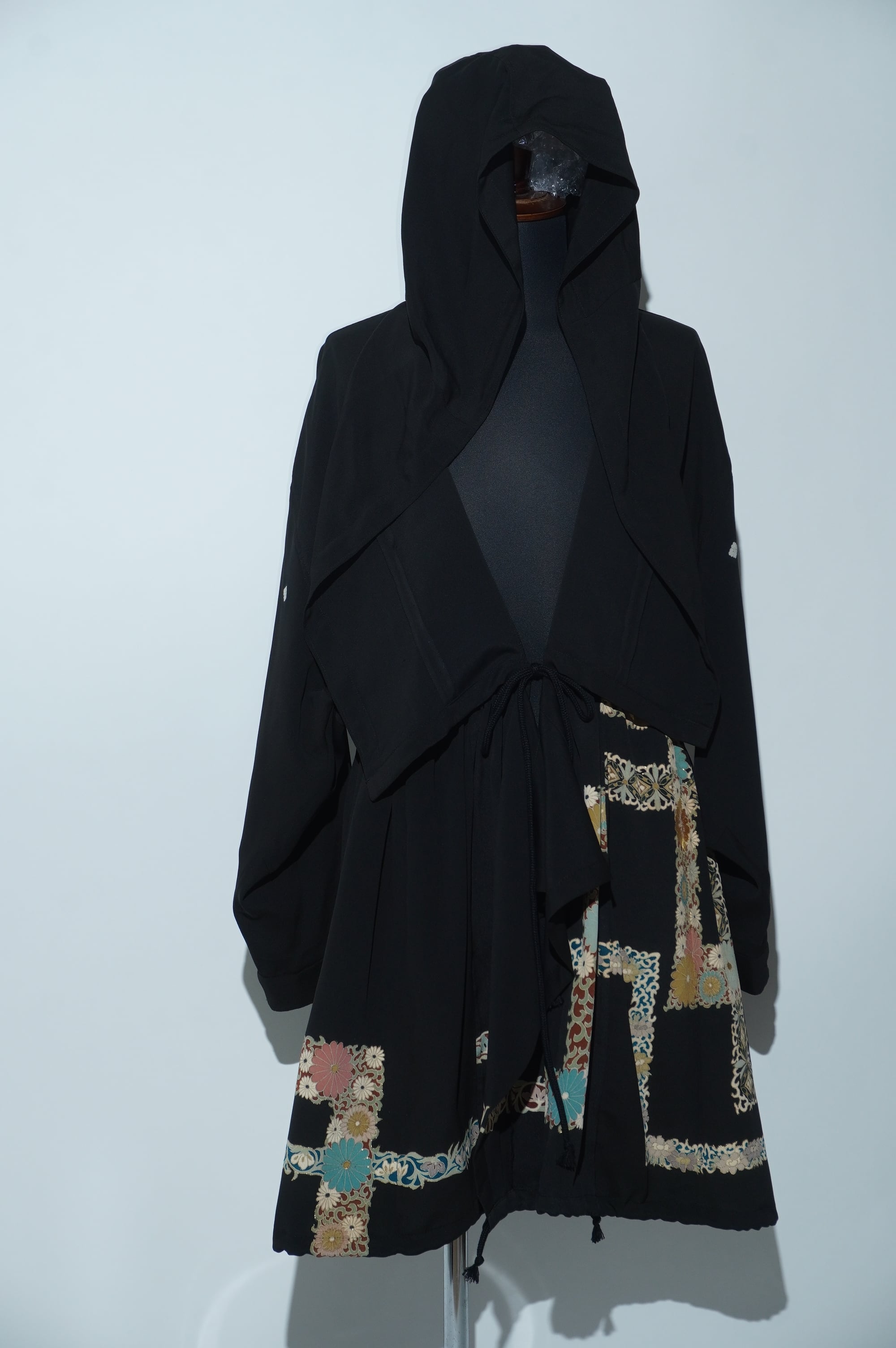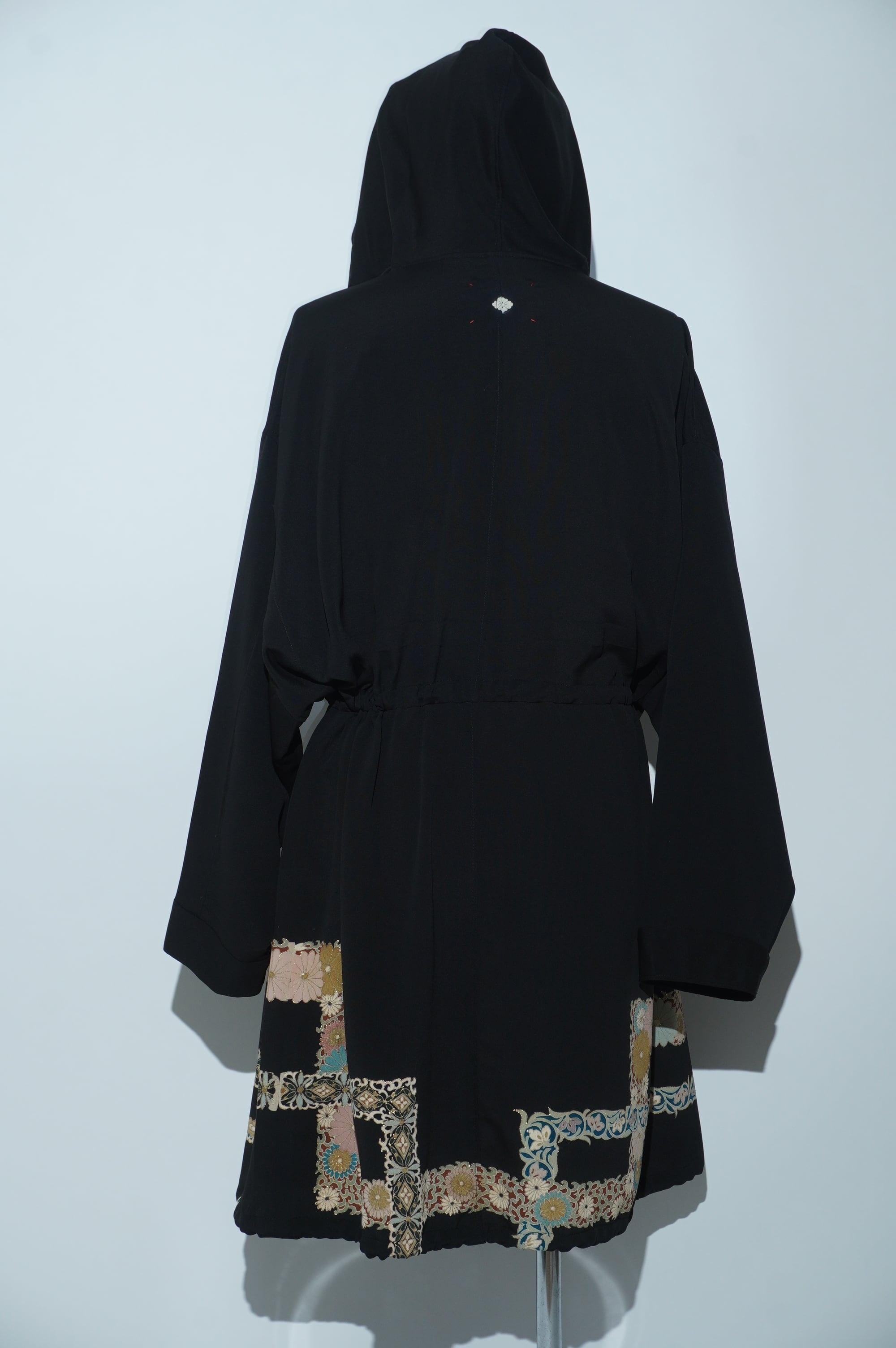 黒留袖リメイクコート/Large hood 菊 七宝文様