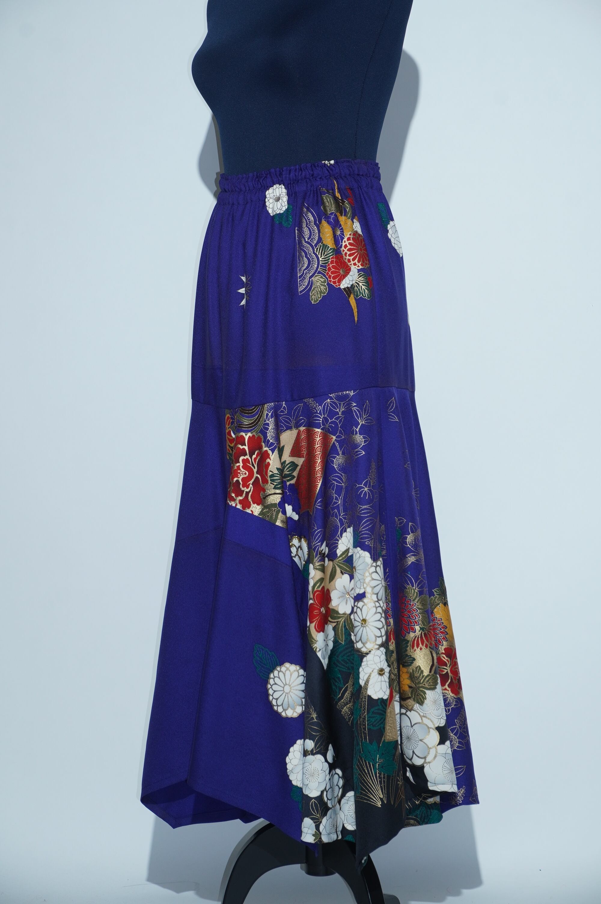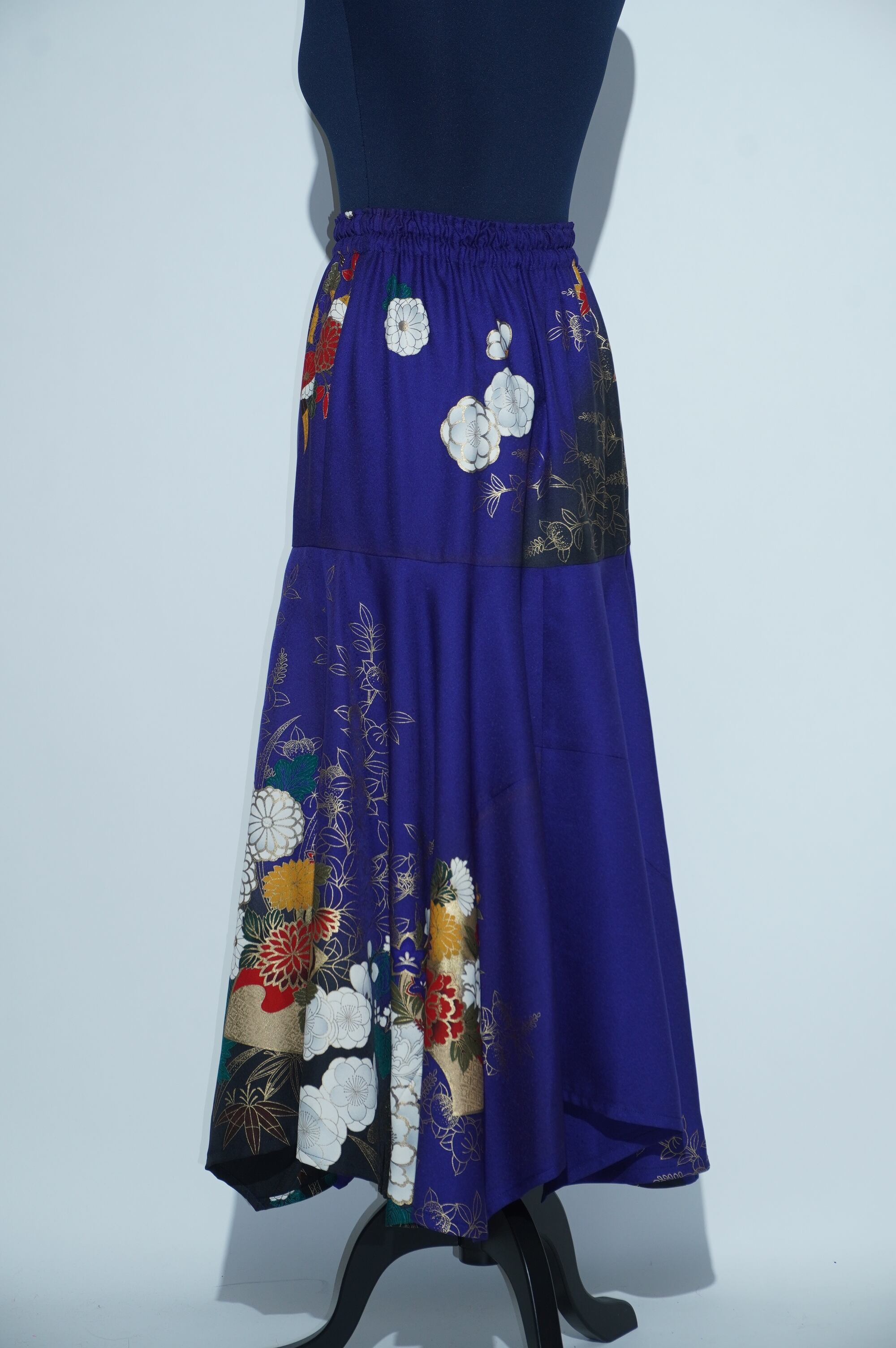 日本の伝統美を現代のスタイルに融合させた、振袖リメイクスカート。