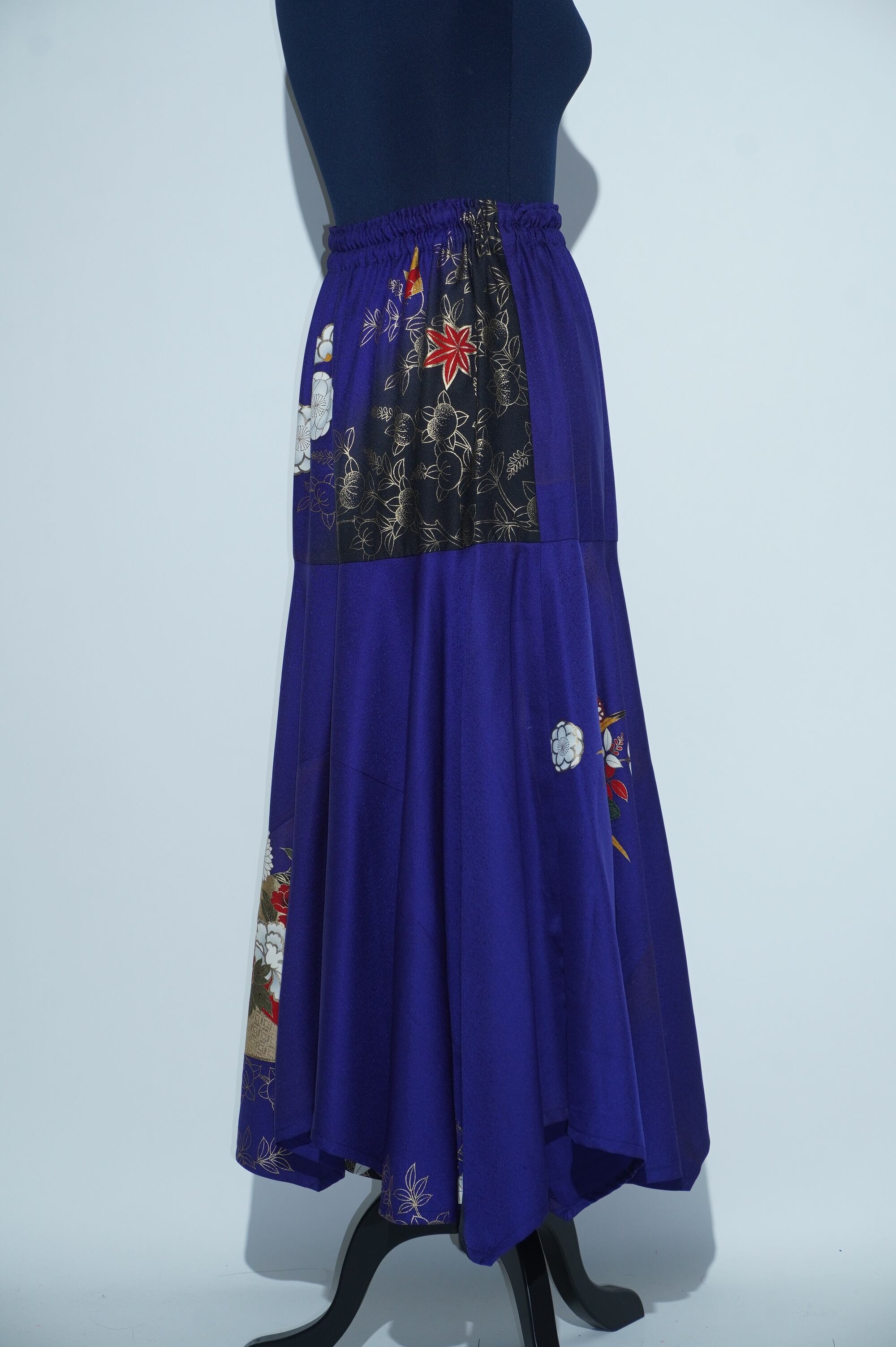 ハンドメイドで仕上げられたこのアイテムは、細部にまでこだわっており、全てのスカートがユニークなデザインを持っています。伝統と現代が美しく調和した一着で、毎回新たなスタイルの発見を楽しめることでしょう。